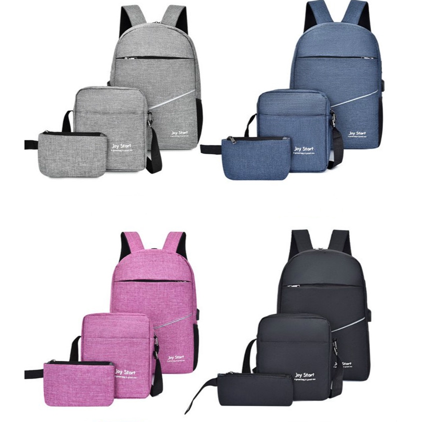 3 Piece Set Men S Backpack Messenger Bag Change Bag Usb Charging Business Casual Student Bag Computer Bag Travel Bag Shopee Malaysia